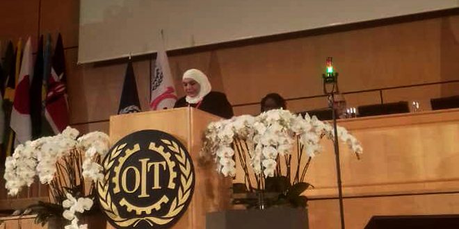 GENEVA, (ST)- Minister of Labour and Social Affairs Rima Qaderi has stressed that the ministry will continue to tackle the terrorist war’s repercussions on the Syrian people as well as on the Syrian economic and social infrastructure, job market and human resources and will keep working to enhance elements of socio-economic stability in Syria.