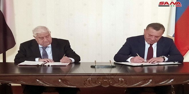 The protocol was signed by Deputy Premier, Minister of Foreign Affairs and Expatriates Walid al-Moallem and the Russian Deputy prime Minister Yuri Borisov, while the agreement on custom cooperation was signed by al-Moallem and Deputy head of the Federal Customs Service of Russia Vladimir Evin.