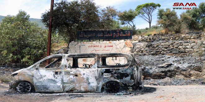 In turn, the Democratic Front for the Liberation of Palestine stated: “The massacre committed by the Israeli occupation in the outskirts of Masyaf last night, and the setting of fires in public and citizen property is a war crime for which the occupation must be punished; firstly for its aggression against the sovereignty of an independent state, the Syrian Arab Republic, secondly for targeting unarmed civilians, and thirdly for targeting civilian property, including forests, orchards and private farms.”