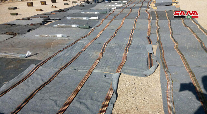 According to the Syrian News Agency (SANA), some of the weapons, ammo and medicines are made in Israel and western countries and they are discovered in the southwestern countryside of Damascus and in the northern countryside of Quneitra.